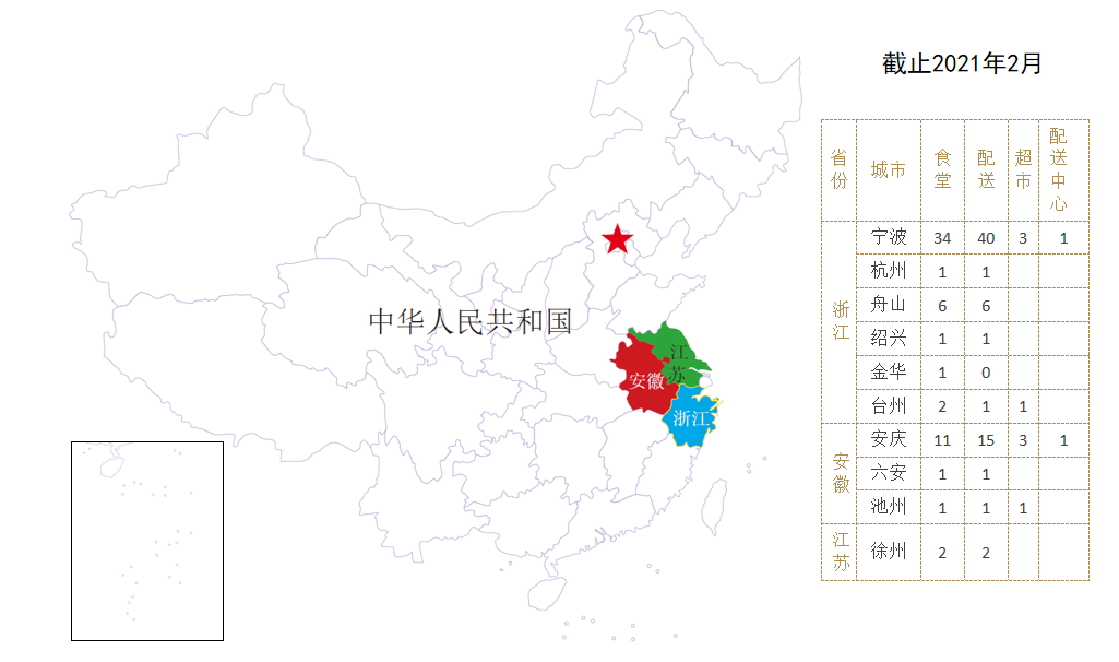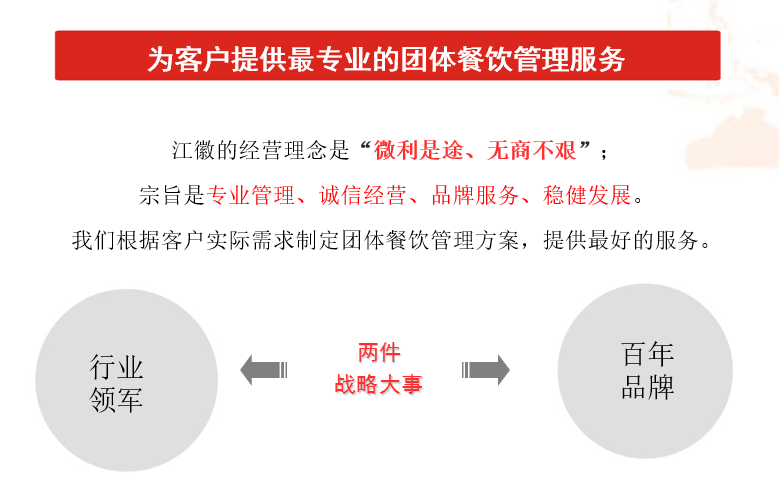 寧波市江徽美食餐飲有限公司是一家綜合性團(tuán)膳服務(wù)企業(yè),公司主營業(yè)務(wù)有團(tuán)膳餐飲服務(wù)、食品原材料配送、蔬菜種植、畜牧養(yǎng)殖、酒店、超市、物業(yè)管理等。公司業(yè)務(wù)覆蓋寧波、舟山、紹興、安慶、池州、徐州、杭州、六安、金華等城市,現(xiàn)有各類食堂項目60多家、大型冷鏈配送中心近6000平方米、蔬菜種植基地3000畝(含300畝自有大棚種植基地)、休閑農(nóng)莊酒店1所、超市10家。