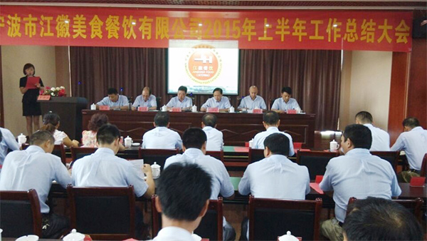 2015年8月4日,江徽美食餐飲有限公司2015年度上半年工作總結大會在新落成的潛山縣江徽現(xiàn)代農(nóng)莊多功能會議廳勝利召開。來自寧波轄區(qū)的片區(qū)經(jīng)理、經(jīng)營點經(jīng)理,安徽轄區(qū)的經(jīng)營店經(jīng)理共計40余人參加了會議,公司總經(jīng)理江中民,財務副總范永祥、徐東風,行政副總段輝良、程進及安徽轄區(qū)副總余漢彪等公司領導出席會議。