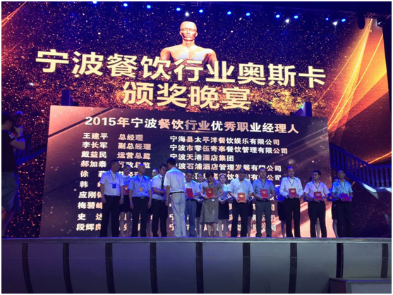 2016年6月21日,公司總經(jīng)理江中民參加寧波市餐飲產(chǎn)業(yè)發(fā)展大會,作為2015年寧波市餐飲行業(yè)優(yōu)秀企業(yè)家代表發(fā)言。除總經(jīng)理江中民被評為寧波市餐飲行業(yè)優(yōu)秀企業(yè)家外,公司常務(wù)副總經(jīng)理段輝良先生被評為寧波市餐飲行業(yè)優(yōu)秀職業(yè)經(jīng)理人,寧波中學(xué)經(jīng)理王春生先生被評為寧波市餐飲行業(yè)優(yōu)秀店長。當(dāng)日晚,三位受邀參加寧波餐飲行業(yè)奧斯卡頒獎晚宴,接受了頒獎。