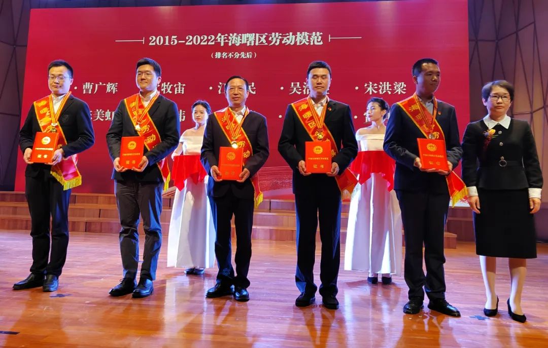 勞動創(chuàng)造幸福,實干成就偉業(yè)。2023年4月26日,海曙區(qū)慶祝五一國際勞動節(jié)暨勞模先進表彰大會在寧波音樂廳舉行。江徽公司總經(jīng)理江中民榮獲“海曙區(qū)勞動模范”光榮稱號;江徽公司執(zhí)行總經(jīng)理段輝良榮獲“海曙工匠”光榮稱號。